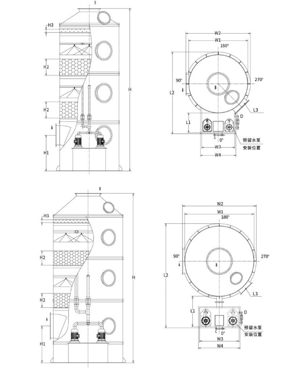 Tip 2: Scruber de pulverizare cu rezervor de apă de tip split (Diametrul turnului: Φ2500mm–Φ3500mm)