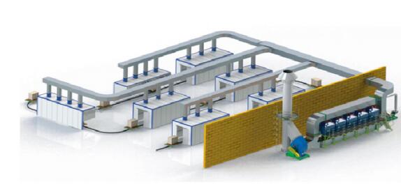 Gazele de evacuare sunt trimise în absorbantul de cărbune activ de către ventilatorul de admisie a aerului. Sub acțiunea forței Van der Waals, solventul organic din gazele de eșapament este captat și adsorbit de microporii din carbonul activat. După ce cărbunele activ este saturat cu adsorbție, acesta este regenerat. Gazele de eșapament sunt purificate prin adsorbția cărbunelui activ și apoi evacuate curat.