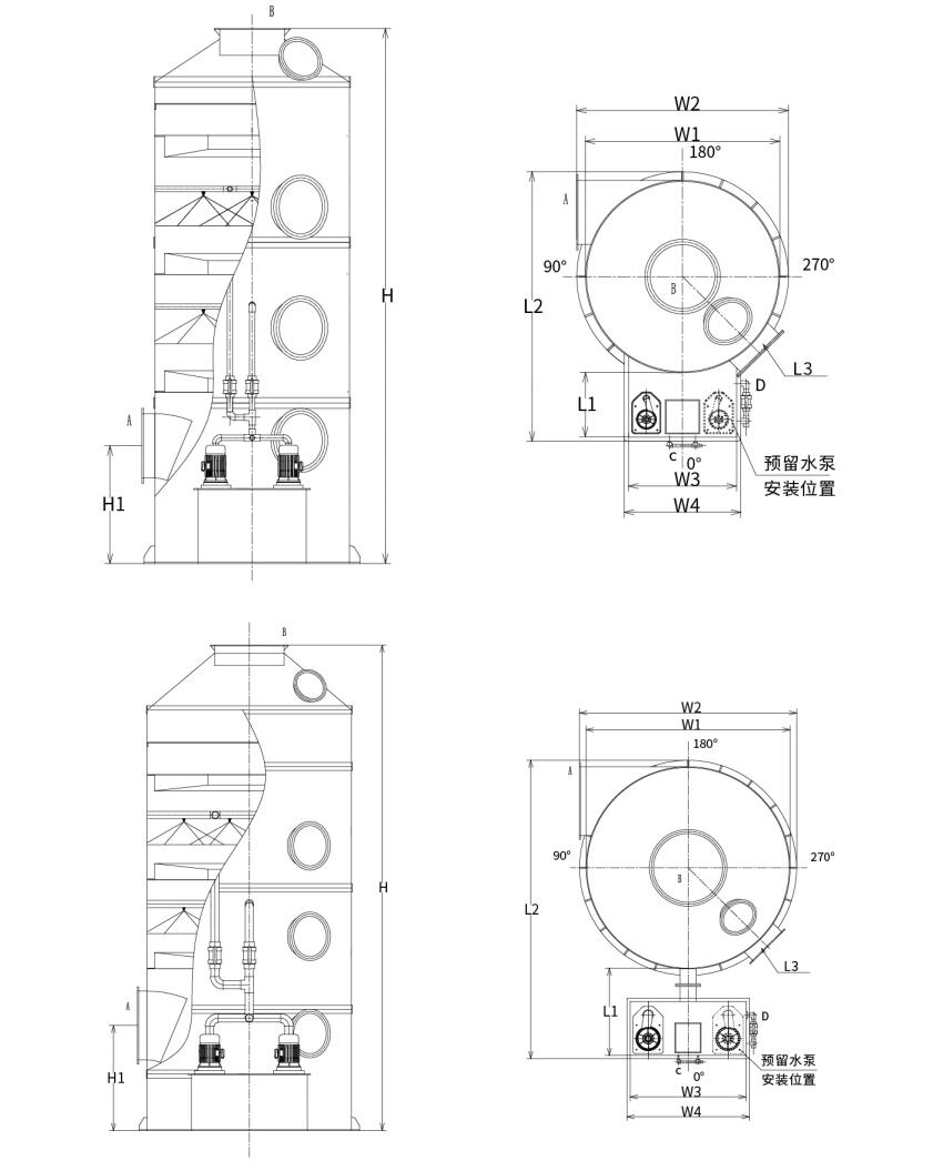 Tip 2: Epurator ciclon pentru rezervor de apă de tip split (Diametrul turnului: Φ2500mm-Φ3500mm)