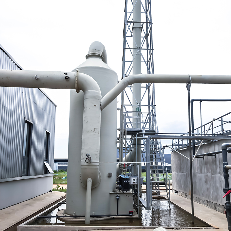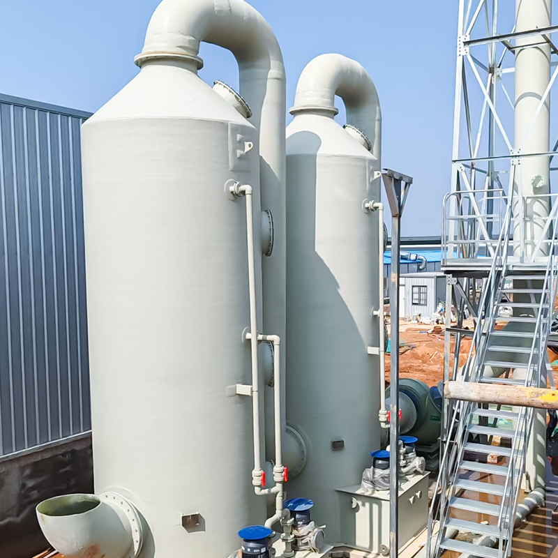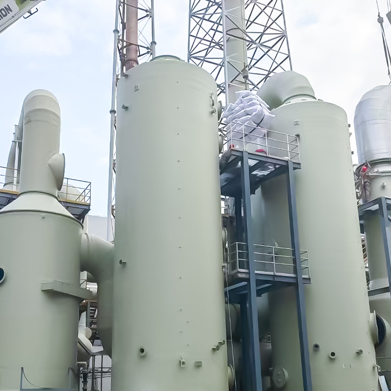- Turnul de absorbție a apei (tratarea clorurii de hidrogen): HCl este ușor solubil în apă și poate fi îndepărtat direct prin absorbția prin pulverizare de apă. Acesta este potrivit pentru gazul rezidual HCI cu concentrație mare (de exemplu, sinteza chimică, decaparea metalelor). După absorbție, acidul clorhidric diluat rezultat poate fi reciclat.